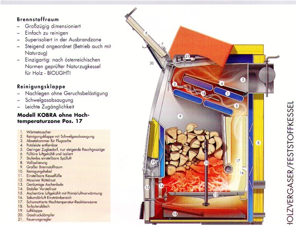 Holzvergaser-Naturzugkessel *** mit zwei getrennten Brennkammern